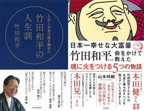 師が死の間際まで情熱を燃やした姿に感銘を受け、「お金は幻だが、氣を伝える道具になる」と氣付き、「お金」から解放されていく。その時の内容は書籍「人生とお金の道を極めた竹田和平の人生訓(竹田和平 致知出版社)に寄稿、「魂に火をつける5つの物語(山本時嗣 光文社)」に掲載。